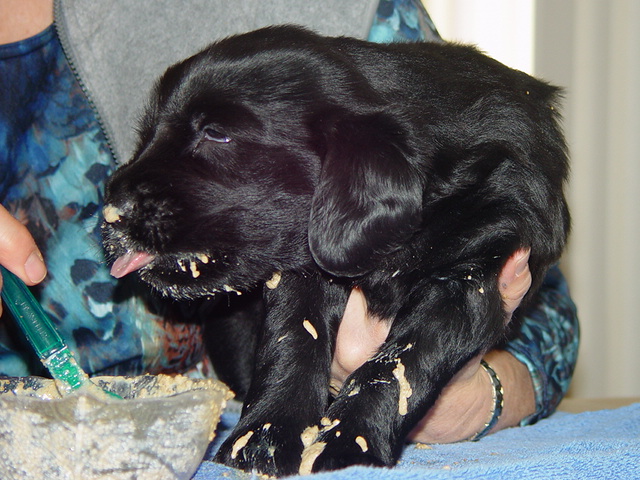 Nun wird es eng für Indy... So langsam beginnt die Futterumstellung und es heisst Abschied nehmen von "unlimitierten Saufgelagen" bei Mutti. Mit der Rationierung, wird auch Indy lernen müssen, dass Flatis-immerwährender-Appetit nicht immer befriedigt wird. Leeeiiiiider!