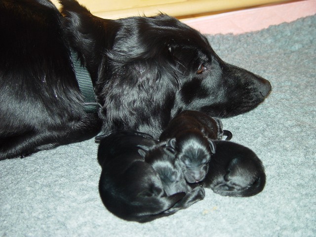 Nach Komplikationen, die eine Frühgeburt zur Folge hatten, hat Mandy am 30. Januar zwischen Mitternacht und drei Uhr morgens leider nur drei lebende Welpen, zwei Rüden und eine Hündin, geworfen. Ihre Namen sind Iron Lenny, Indigo Boy und Isheena Sunshine.