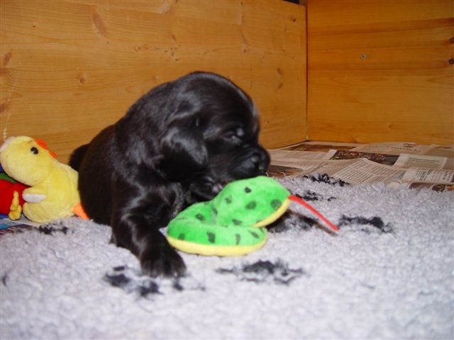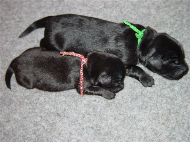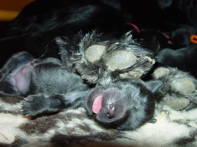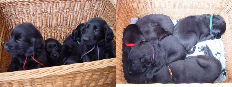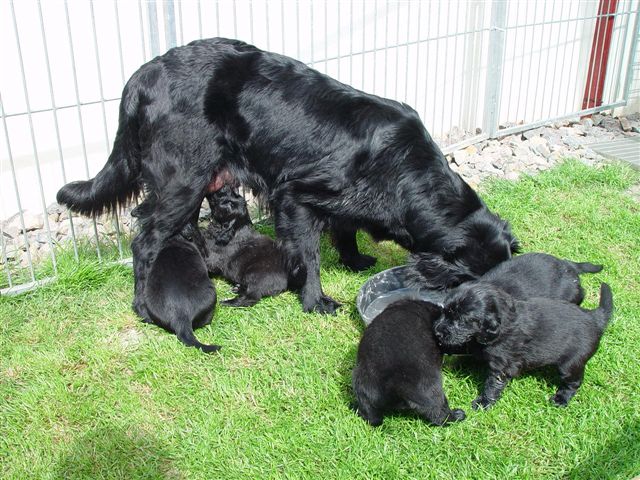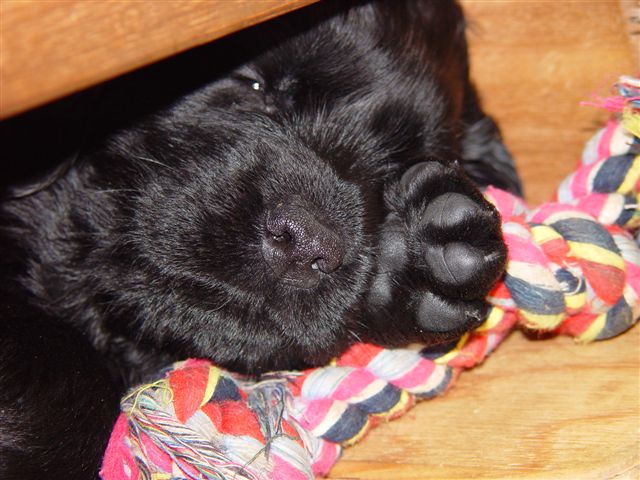 Eigentlich sollte ein Flat ja "Katzenpfoten" haben. Auf diesen Bildern sieht es jedoch eher so aus, als hätten die Welpen es mit Löwenpranken zu tun.