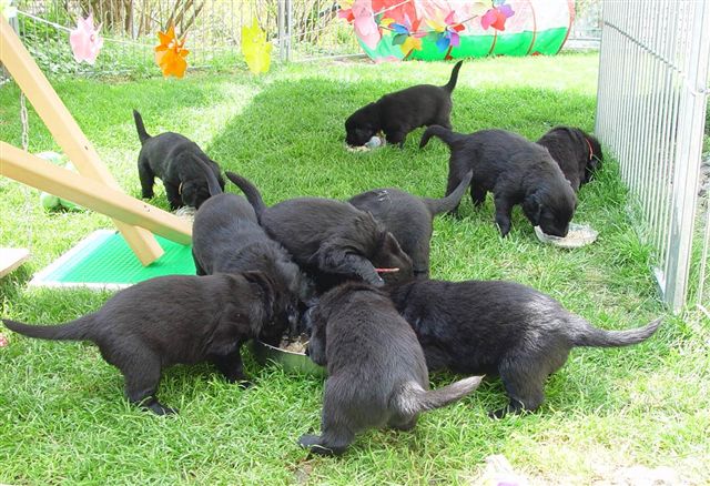 Seit drei Tagen gehen die Welpen nun stundenweise in den Garten. Schön zu sehen, wie der Futterkreislauf so funktioniert. Nur Lucy wird ausnahmsweise mal nicht in diesen miteinbezogen. Aber sie wird sich ihren Platz schon erkämpfen ...