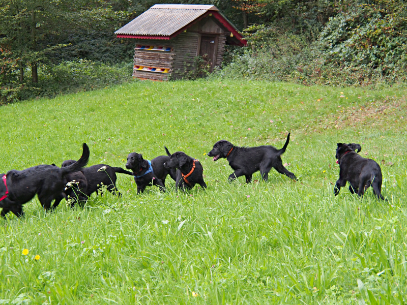 Nachdem sich die Welpen inzwischen alle schon gut eingelebt haben in ihrem neuen Zuhause, trafen sich heute 6 der 7 Geschwister zu einem ausgelassenen Spiel am Waldrand. Nach gegenseitigem Beschnuppern hatten dann alle mega Spass zusammen. Auch Jaymee und Eadan freuten sich die Rasselbande wieder zu sehen!