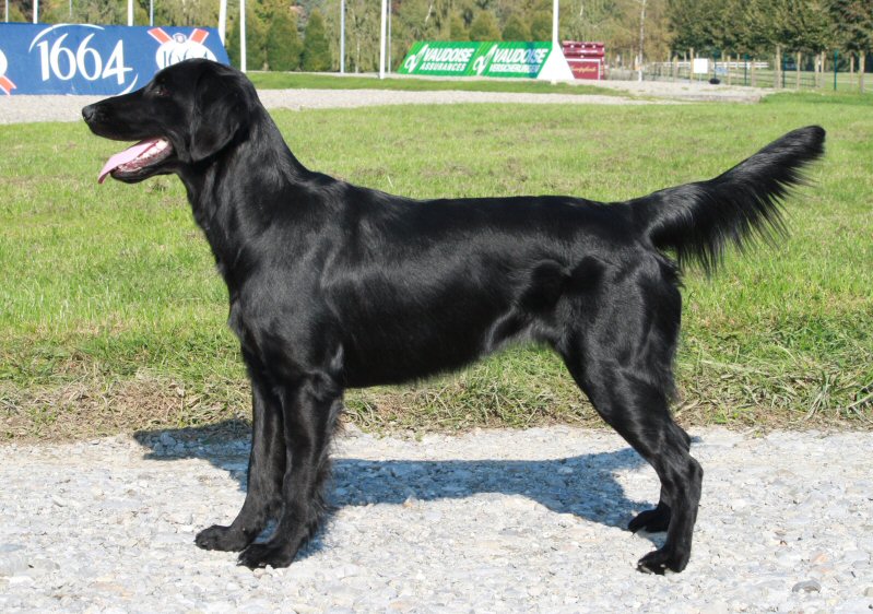 "Excellent size and type, feminine head, very good topline, very good lay of shoulder, straight upperarm, well angulated at rear, very good body, moves slightliy close behind, very good stride from the side, excellent coat quality and presentation."