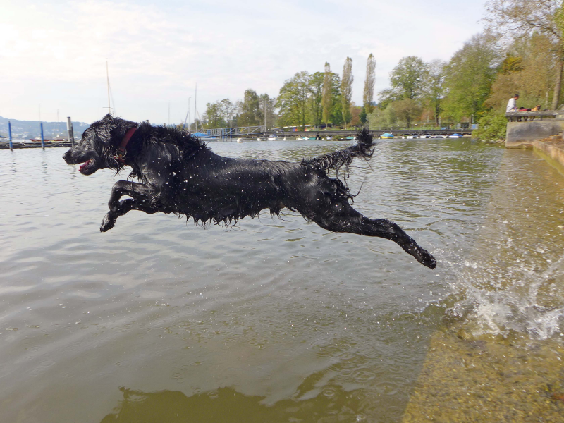 Splashing Water's Openhearted Billy im eleganten Sprung ins Wasser! Wer hätte das vor einem Jahr gedacht, dass der eher Wasserscheue Billy mal so freudig Anlauf nimmt - die Zeiten, wo nur die Pfoten nass wurden sind endgültig vorbei!