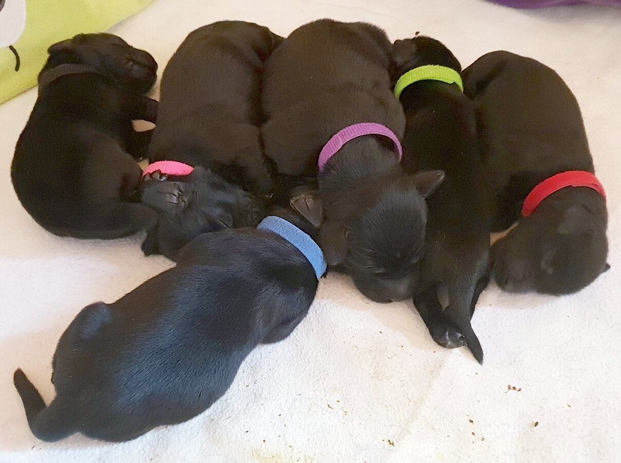 Am Sonntagabend hat Kaylah ihre 6 Welpen zur Welt gebracht. Leider lag der erste Welpe quer, sodass die Kleinen per Kaiserschnitt geholt werden mussten. Ich bin überglücklich und dankbar, dass alle überlebt haben. Kaylah hat den Eingriff auch gut überstanden und kümmert sich rührend um ihre Babies!