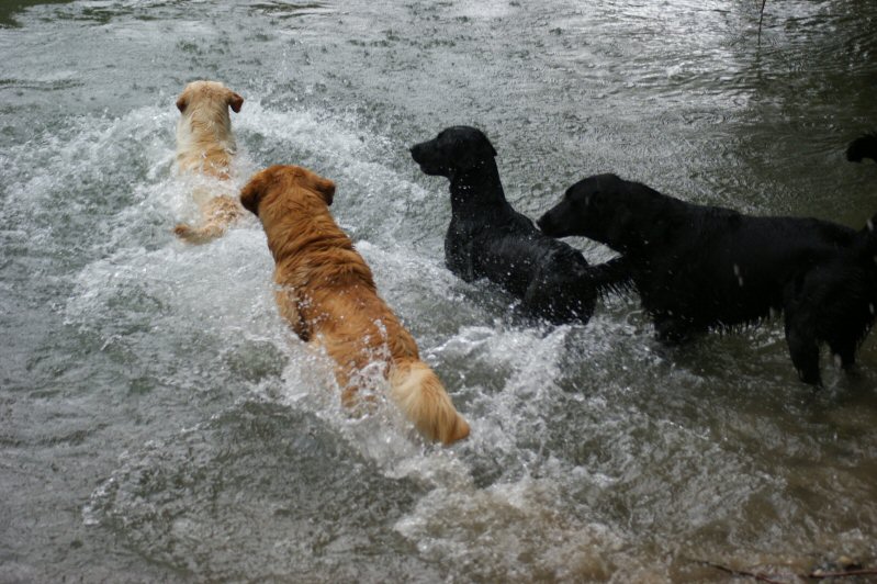 Als krönender Abschluss der Prüfung, durften alle 4 Hunde ihrer Gruppe noch ausgiebig in der Aare baden gehen!