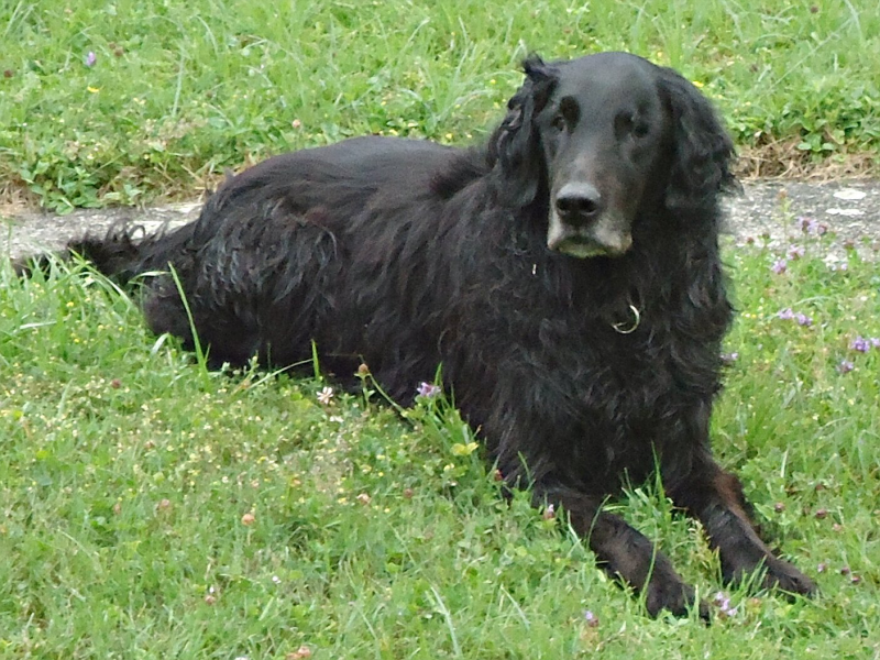 Der momentan älteste Hund aus meiner Zucht - Splashing Water's Handsome Sherlock - hat uns mit knapp 13 1/2 Jahren verlassen. Er hat 2 Würfe gezeugt und lebt in seinen Nachkommen weiter! Sein Sohn Neala's Zealous Hunting Owl wurde sogar internationaler Schönheits-Champion und war einer der wenigen Dual-Purpose Flatcoats in der Schweiz!
