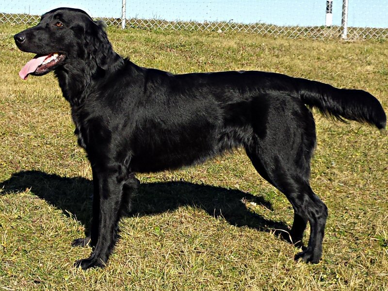 "typische Flat-Hündin, die bereits "fertig" wirkt und die sowohl im Stand, wie auch in der Bewegung die Rassemerkmale zeigt." - vorzüglich